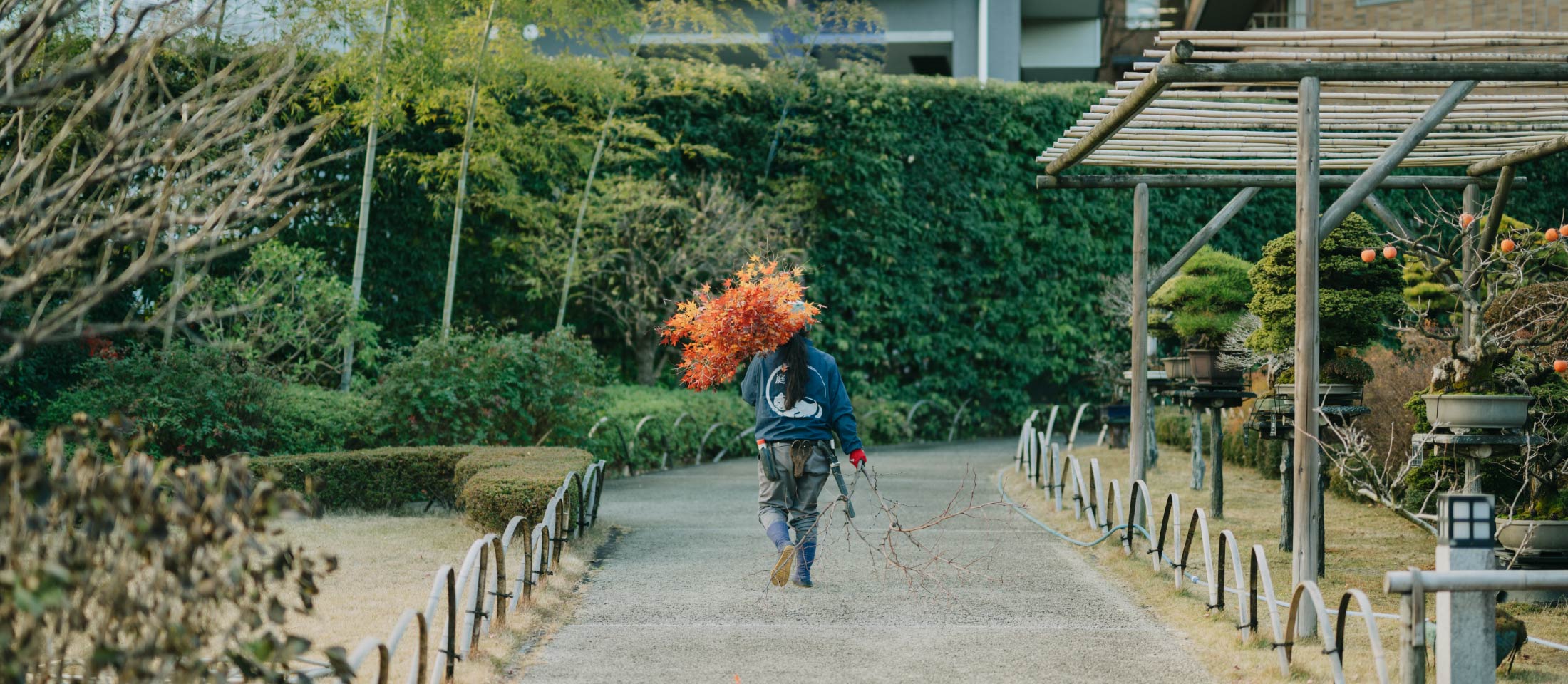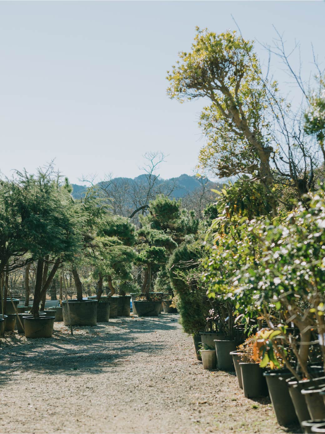 - 年月を重ねた植木の里親の木々は個性豊かな樹形が特徴で、住宅をお求めのお客様にリアルなイメージを想起していただけます。 展示場づくりや撮影時などでご活用いただいています。
